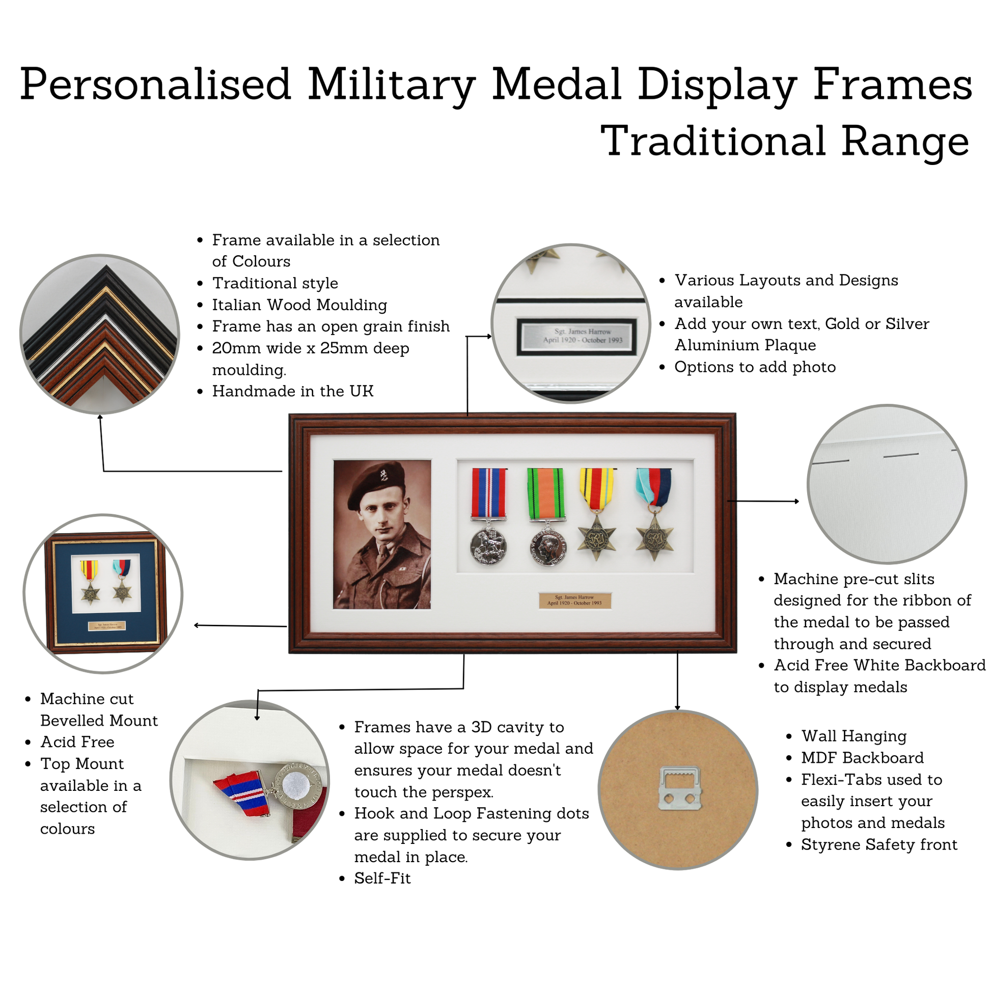 All our Medal frames feature a woodgrain finish, a durable perspex/styrene window, an MDF backboard, and come complete with hanging fixtures.