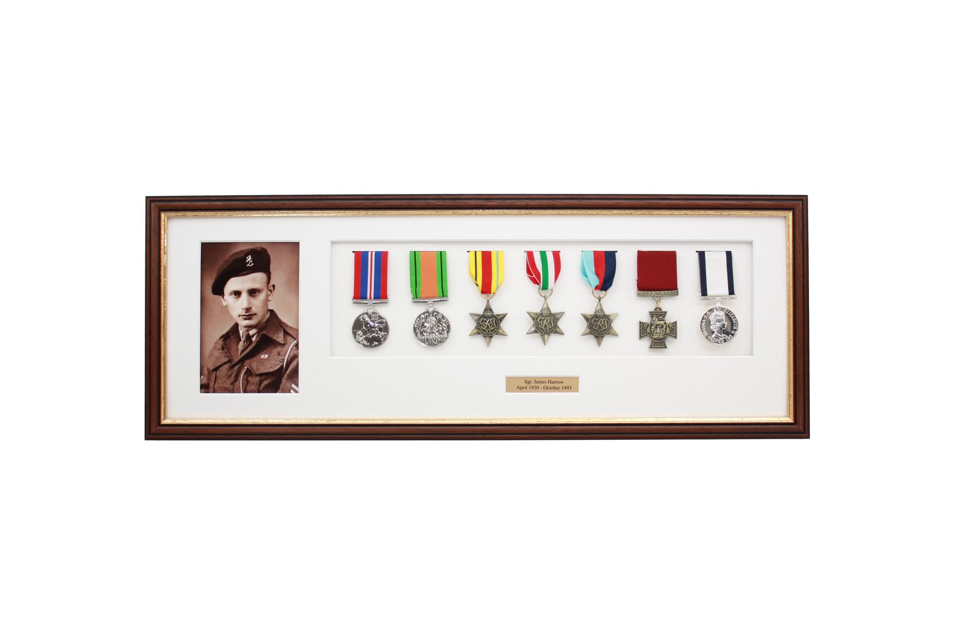 Personalised Military Medal display Frame for Seven Medals and one 6x4" Photo. Traditional Range.